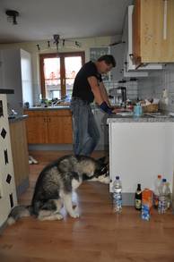Ey Leute ICH bin ein Schlittenhund....der kann NICHT warten .... wozu auch ???? Ich hab ja schon mal gebettelt drum...dass ich abends mit meiner Mama mal mitlaufen darf....da wird was hintendrangehängt.... und die freuen sich....also muß das TOLL sein :-)
